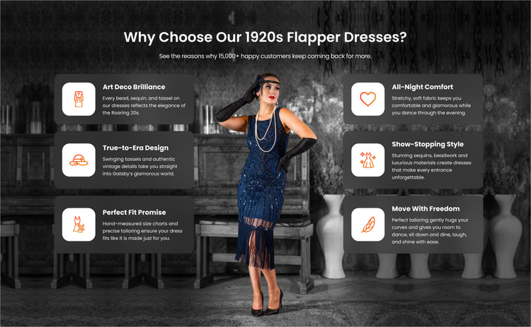 Get ready to shimmer, sway, and steal the spotlight in our dazzling Black Fringe Flapper Dress — an absolute showstopper that delivers serious wow factor, especially when paired with the right accessories. Inspired by the glamour of the jazz age, this design blends shimmering...- $69.95